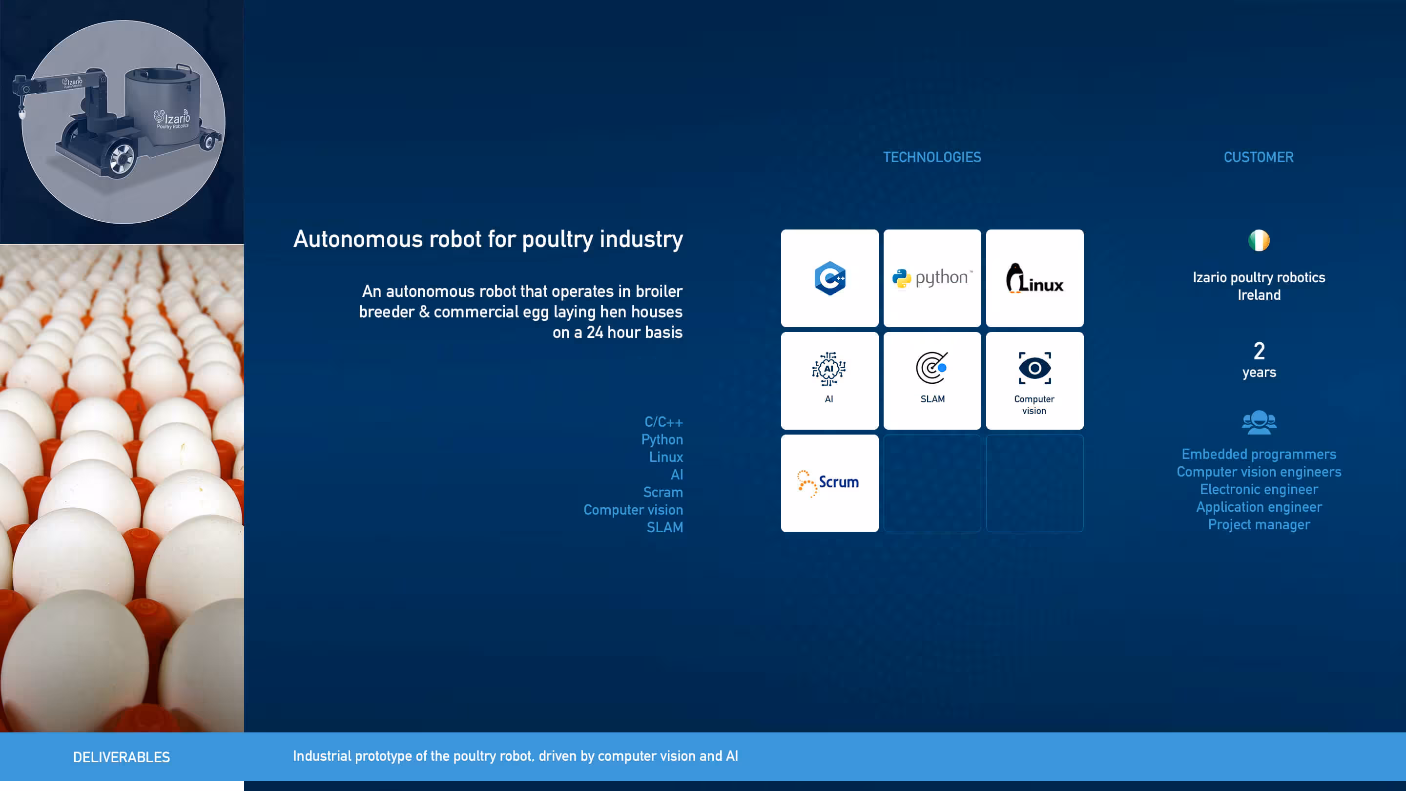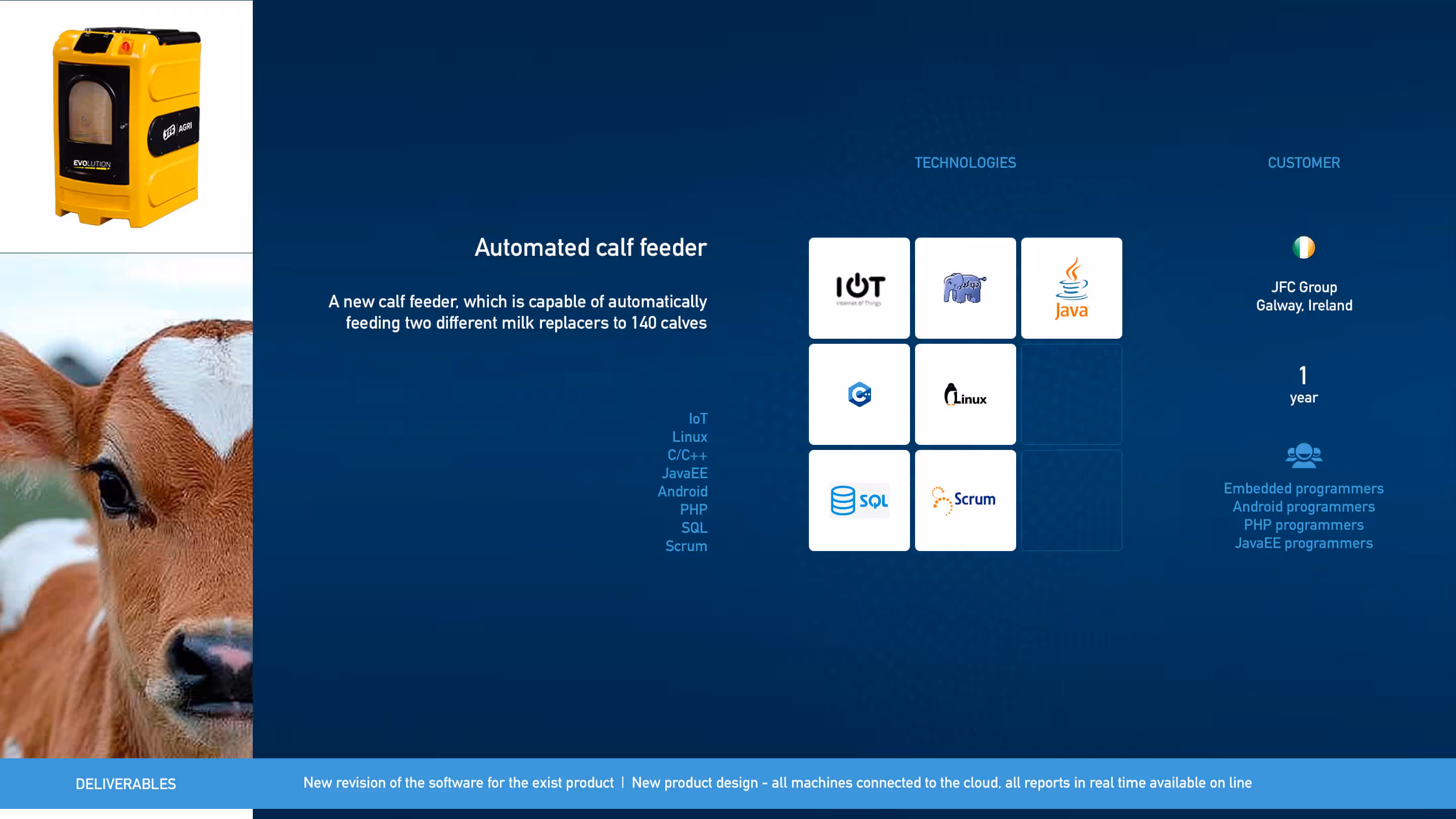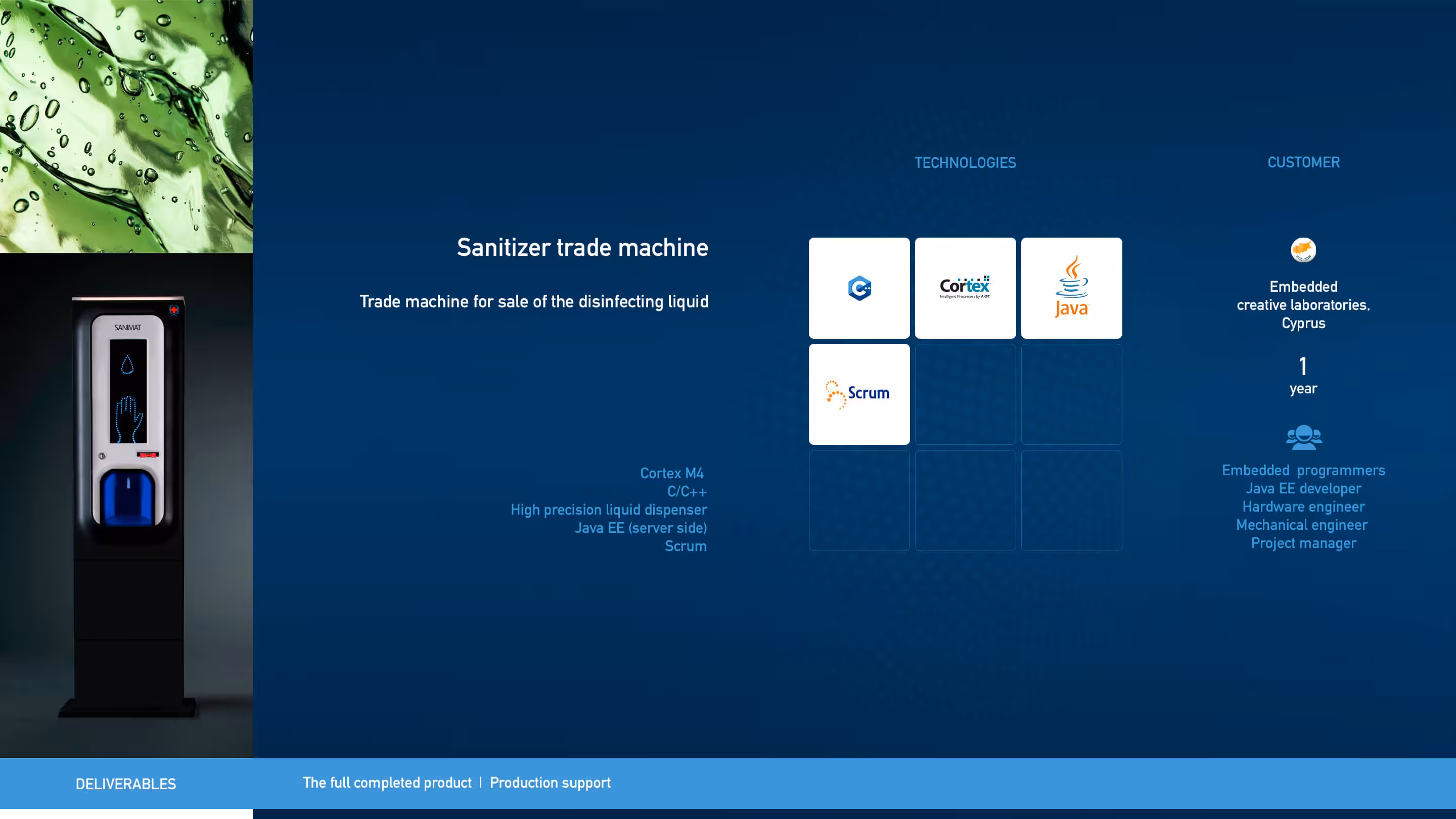 Embedded software. IoT connectivity. AI application. Frontend and backend. Mobile application.